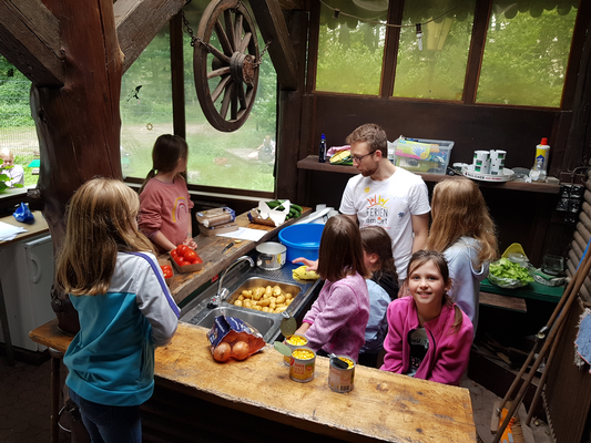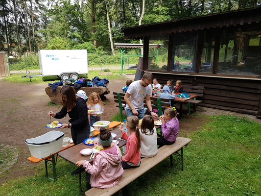 Das Hauptthema „Bewegung erleben“ war Programm. Das Spielmobil der Jugendorganisation des Sportkreises wurde dabei rege genutzt. Stelzenlauf, Jonglieren oder Hockey – alles wurde ausprobiert. Knifflige Aufgaben mussten bei der Schnitzeljagd gelöst werden und bei der täglichen Zubereitung des Mittagessens wurde fleißig geschnippelt und geschält. Zum Abschlussgrillen waren auch die Eltern eingeladen. Nach den Tagen in der Natur wurde am Sporttag wieder ein buntes Sportprogramm mit Badminton, Turnen, Breakdance, Basketball und verschiedenen Spielen angeboten.
