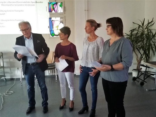 Anlässlich der Jahreshauptversammlung des Wittlicher Turnvereins wurden drei Übungsleiterinnen des WTV für 30 bzw. 25 Jahre ehrenamtliche Tätigkeit im Verein geehrt. Sportkreisvorsitzender Günther Wagner verlieh Ute Fischer, Heike Müller und Andrea Ruloff im Auftrag der Präsidentin des Sportbundes Rheinland, Monika Sauer, die Ehrennadel in Silber. Diese Auszeichnung wird für besondere Verdienste um den rheinland-pfälzischen Sport vergeben. Alle drei sind von Kindes Beinen im Verein. Zunächst selbst mit großem Erfolg als aktive Sportlerinnen in der Trampolinabteilung. Nach ihrer aktiven Zeit geben sie seit nunmehr langen Jahren ihre Erfahrungen als fachkompetente Trainerinnen an die Kids und Jugendlichen der Abteilung weiter. Dieser Trainingseinsatz wird mit kontinuierlichen Erfolgen ihrer Zöglinge belohnt, die jedes Jahr Titel auf Rheinland und Rheinland-Pfalz-Ebene einheimsen. Neben der intensiven Trainingsarbeit engagieren sie sich auch noch im Abteilungsvorstand. Den Glückwünschen des Sportkreisvorsitzenden schloss sich der Vorstand des WTV gerne an.