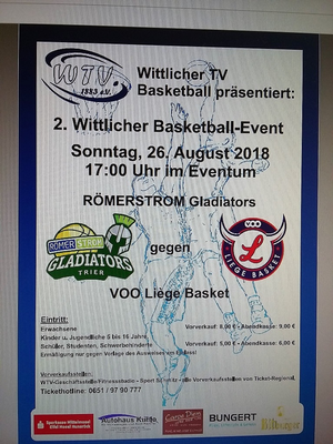 Bereits vor fünf Jahren wagte sich der WTV mit dem 1. Basketballevent an ein Sportereignis der Extraklasse. Der Vorgänger der Gladiators, die TBB Trier, füllte damals das Wittlicher Eventum mit 800 sportbegeisterten Zuschauern. Das Spiel gegen den belgischen Erstligisten VOO Verviers-Pepinster konnten die Trierer seinerzeit mit 80:67 Punkten für sich entscheiden.