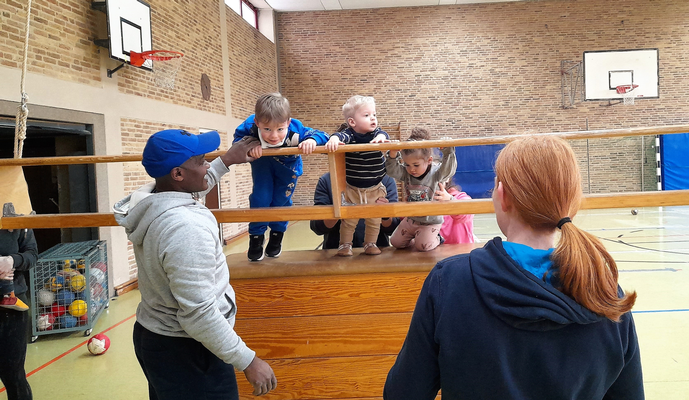 Spiel, Spaß und erste angeleitete Übungen mit Kleingeräten, Alltagsmaterialien und auch einfach ohne Geräte mit Spaß an der Bewegung. Die Kinder im Alter zwischen 2,5 und 4 Jahren lernen sich und ihren Körper durch einfache motorische Fertigkeiten wie Laufen, Klettern, Balancieren, Springen und Schaukeln besser kennen und bekommen so Vertrauen in ihre eigenen körperlichen Fähigkeiten.